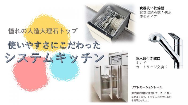 | 設備 | 温水洗浄便座、トイレ2ヶ所、追焚機能、浴室乾燥機、システムキッチン、IHクッキングヒーター、浄水器、食器洗浄乾燥機、ウォークインクローゼット、床下収納、洗髪洗面化粧台、照明器具、電気、上水道、下水道、側溝、複層ガラス、エアコン、モニタ付インターホン、ディンプルキー、庭、駐車場3台分 | ||